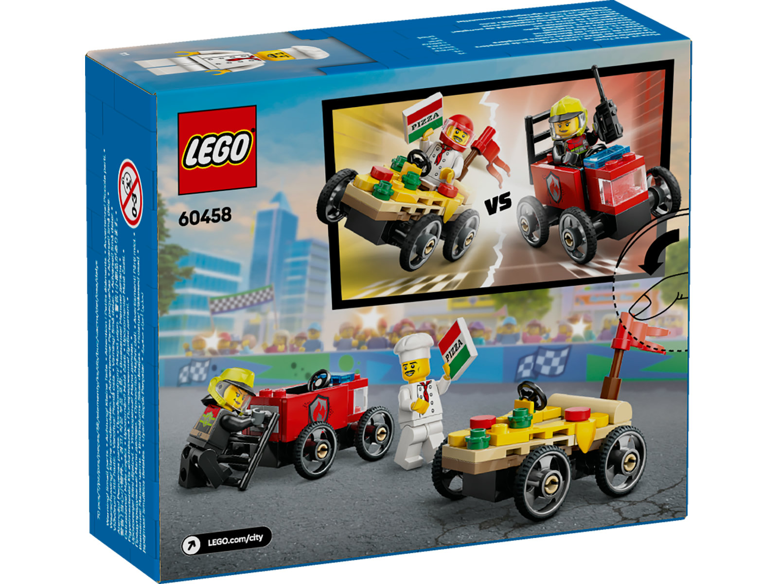 - Spielset für spannende Seifenkistenrennen: Überrasche einen jungen Rennsportfan mit LEGO® City Pizzalieferwagen vs. Löschauto für Kinder ab 5 Jahren