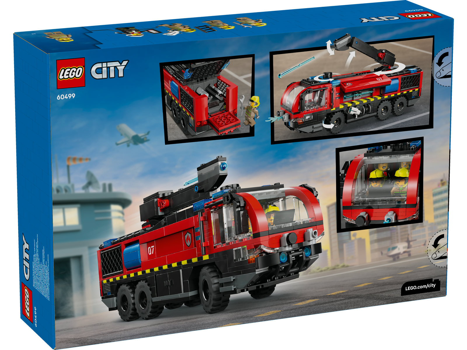 - SPIELZEUGLÖSCHAUTO FÜR KINDER AB 7 Jahren. Das LEGO® City Flughafenlöschfahrzeug (60499) ist eine tolle Überraschung für junge Baufans. Authentische Funktionen und 4 Minifiguren laden zu spannenden Rollenspielen und Abenteuern ein