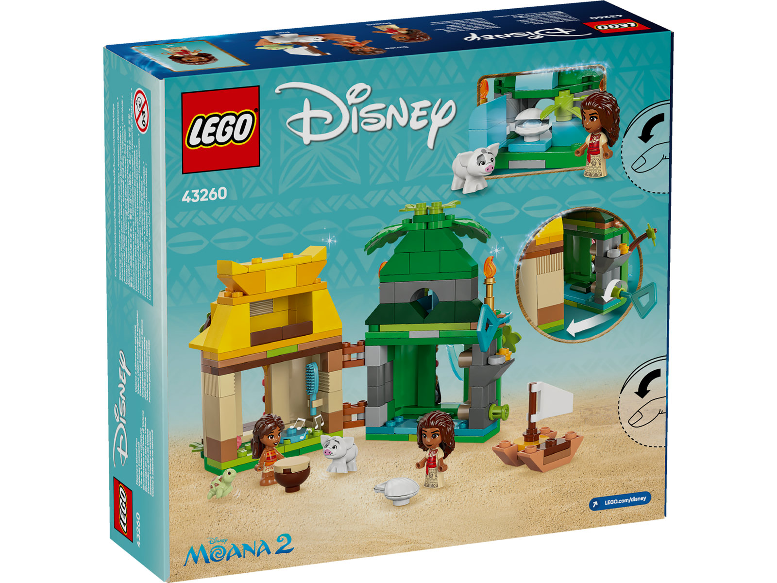 LEGO® ǀ Disney Vaianas Inselspaß (43260) ist ein Bau- und Spielset, das Fans der Disney Heldin Vaiana ab 5 Jahren in viele Fantasy-Abenteuer schickt. Das zweiseitige Modell ist dem Disney Film Vaiana 2 nachempfunden. Das kleine Bau- und Spielset beherbergt eine große Welt im Mikroformat. Auf der Insel befinden sich eine Wasserfallrutsche mit verstecktem Eingang und ein Haus mit Zimmern für die beiden LEGO ǀ Disney Mikro-Spielfiguren – Vaiana und ihre kleine Schwester Simea – sowie mit einem Bereich für Pua. Ein kleines Boot und weitere Elemente, die Kinder sofort Geschichten darstellen lassen, machen das Set zu einem tollen Spielzeug zum Mitnehmen – auch weil man diese Insel mit dem Schlüssel zuschließen kann. Dieses hochwertige Disney Geschenk hat jede Menge Funktionen, die Kinder ihre Lieblingsfilmszenen oder neue Geschichten darstellen lassen. Man kann dieses eigenständige Bauset zum Film Vaiana 2 auch mit anderen separat erhältlichen LEGO ǀ Disney Bausets kombinieren. Außerdem bietet die LEGO Builder App ein ebenso leichtes wie intuitives Bauabenteuer. In der App können Kinder 3D-Ansichten der Modelle vergrößern und drehen, Sets speichern und ihren Baufortschritt verfolgen.