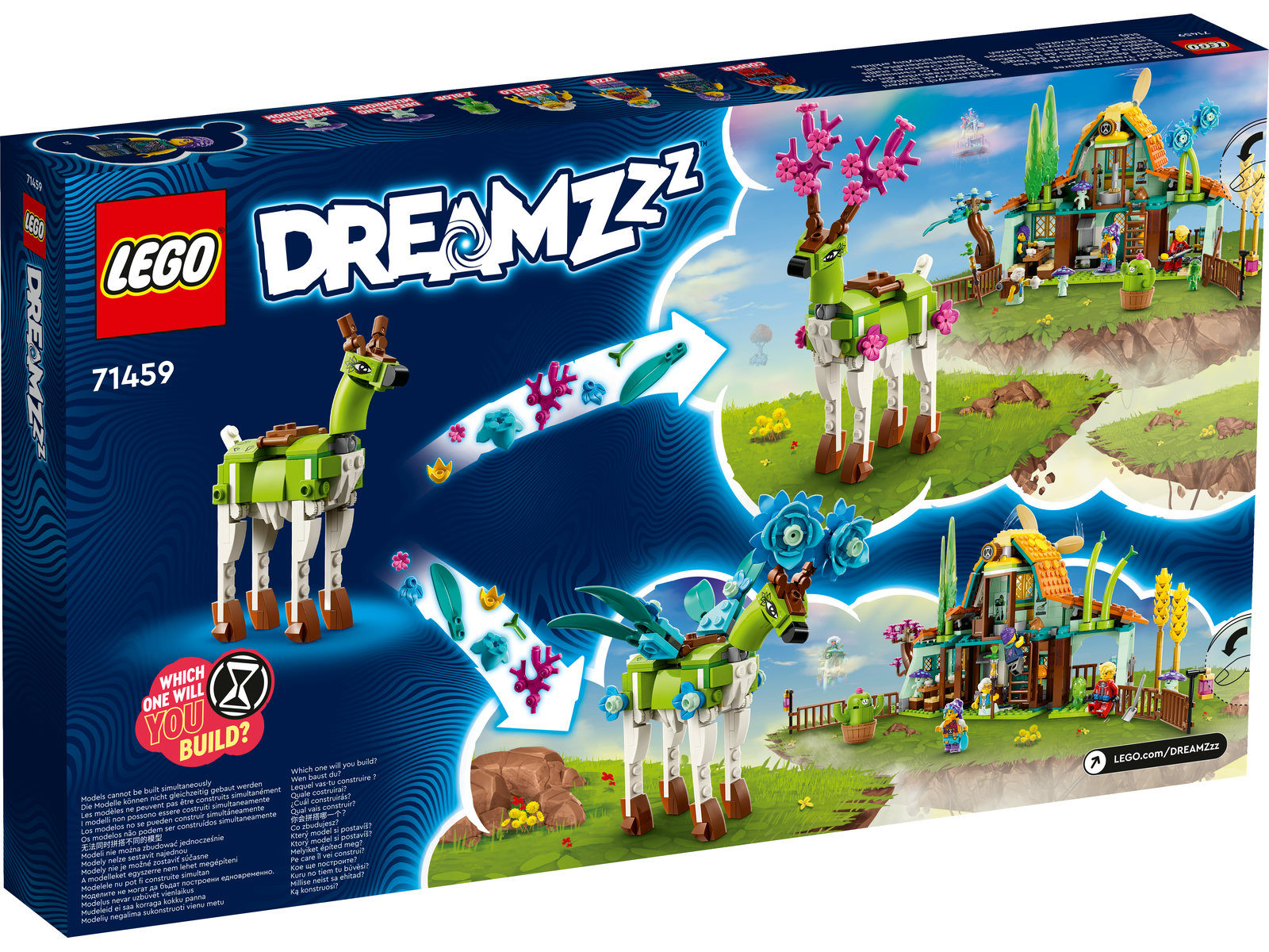 Mit diesem LEGO® DREAMZzz™ Bau- und Spielset zur gleichnamigen TV-Serie können Kinder ab 8 Jahren den wundersamen Stall der Traumwesen (71459) entdecken. Das Set strotzt vor Naturdetails und neuen Freunden und lässt Kinder faszinierende Fabelwesen treffen und magische Blumen züchten. Jede Menge tolle Details lassen Kinder besonders fantasievoll bauen und spielen. Mit großer Begeisterung wird dein Kind die funktionierende Windmühle entdecken, die Scheune mit aufklappbaren Fenstern und Toren erkunden und sich mit Fabelwesen wie den 2 Träumlingen anfreunden. 1 Set, 2 Baumöglichkeiten Dieses Set bietet 2 Baumöglichkeiten. Dein Kind kann den Spielzeughirsch entweder als fliegenden Pegasus oder als wunderschönen Wächter des Waldes verzieren. 2 verschiedene Versionen des Modells lassen dein Kind nicht nur kreativ werden, sondern bedeuten auch den doppelten Spielspaß. Fantastische Details Den Kopf und die Beine des Hirsches kann man bewegen, um ihn beim Spielen leicht in die richtigen Posen zu bringen. Du kannst sein Geweih gegen Blumen aus dem Stall austauschen. Auch 4 detailgetreue Minifiguren – Izzie, Zoey, Cooper und Mrs. Castillo – laden zum Spielen ein.