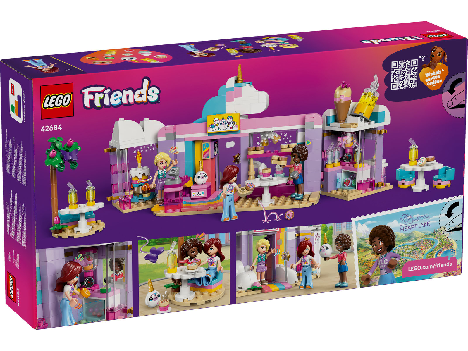 - SPIELSET MIT REGENBOGENEINHORNCAFÉ: Das LEGO® Friends Einhorn-Traumcafé (42684) ist ein Spielset mit 3 Spielfiguren und Spielzeugkuchen, um Kinder fantasievoll spielen und in die Rolle einer Cafébesitzerin schlüpfen zu lassen