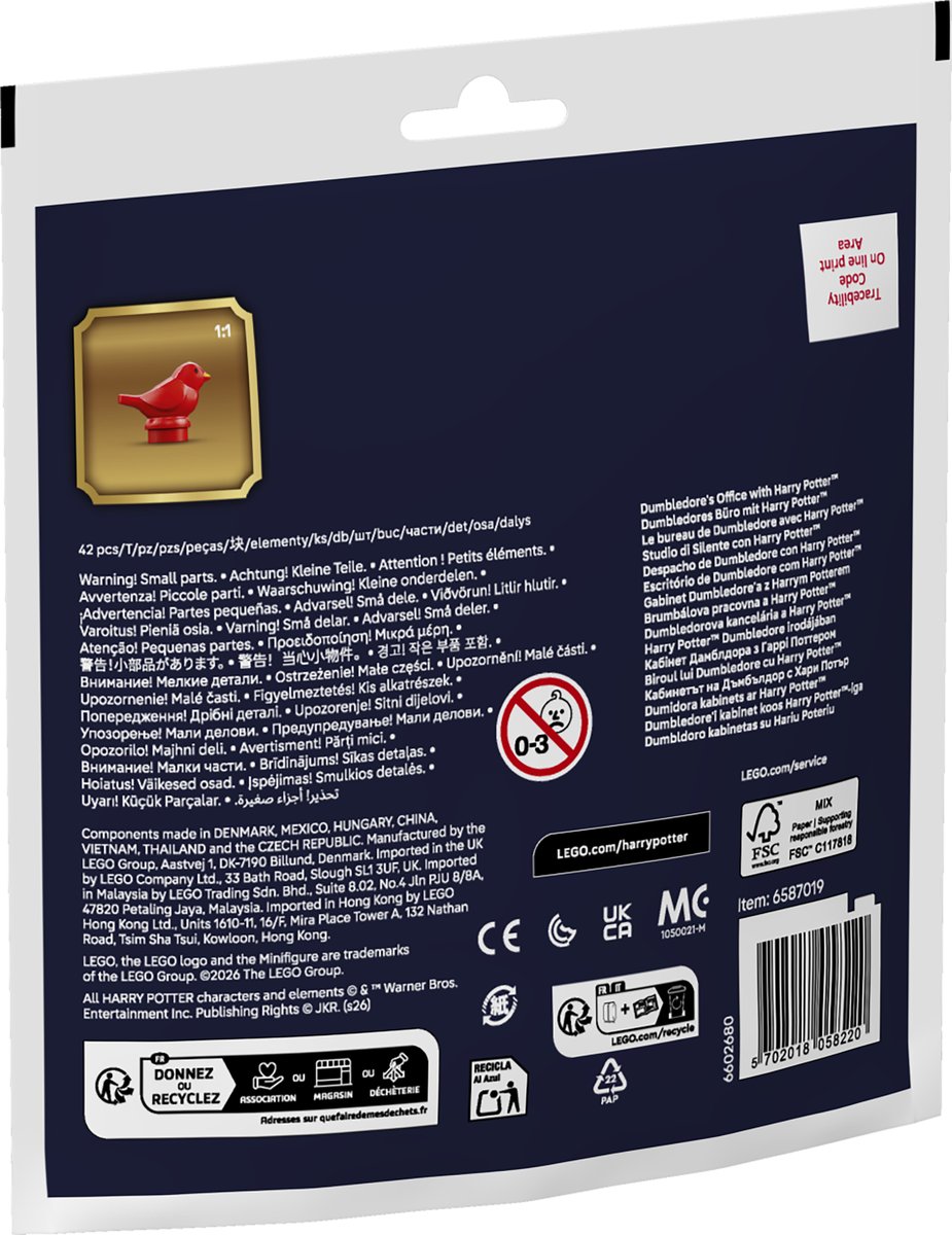 LEGO® Harry Potter™ Fawkes™: Dumbledores Phönix (76448) ist ein Bau- und Spielset, mit dem junge Harry Potter Fans, die Tiere lieben, ihre Begeisterung für die Zauberwelt ausleben können. Der bewegliche Phönix Fawkes hat Greifkrallen, mit denen er sich an die Stange klammern oder den Sprechenden Hut und das Schwert von Gryffindor™ schnappen kann. Dieses Fabelwesen ist ein magisches Geschenk für Mädchen, Jungen und alle Harry Potter Fans ab 8 Jahren, die eine Belohnung verdient haben. Auch das legendäre Zubehör und das niedliche Baby Fawkes lassen Kinder kreativ spielen und ergänzen das zauberhafte Ausstellungsstück perfekt. Für noch mehr Spielmöglichkeiten lassen sich die Modelle auch mit anderen separat erhältlichen LEGO Harry Potter Sets kombinieren. Die LEGO Builder App bietet Kindern ein noch faszinierenderes Bauerlebnis, denn in der App können sie 3D-Ansichten der Modelle vergrößern und drehen, Sets speichern und ihren Baufortschritt verfolgen. Bau- und Spielset mit einem Phönix für Kinder ab 8 Jahren: Dumbledores Phönix Fawkes™ ist eine Figur aus LEGO® Steinen, die dein Kind seine Begeisterung für Harry Potter™ Abenteuer ausleben lässt Fabelwesen zum Spielen: Fawkes™ kann Kopf, Schnabel und Flügel bewegen. Und dank seiner Greifkrallen kann er auch auf die baubare Stange über der Asche gesetzt werden Belohnung für Kinder: Dieses kompakte Set bietet Harry Potter™ Fans, die noch keine LEGO® Modelle gebaut haben, ein lohnendes Bauerlebnis. Die authentischen Details lassen Kinder besonders kreativ spielen Legendäres Zubehör: Dieses Set zum Bauen, Spielen und Ausstellen beinhaltet einen Sprechenden Hut aus LEGO® Steinen und das Schwert von Gryffindor™ (die sich Fawkes™ „krallen“ kann) sowie eine Figur, die das Baby Fawkes darstellt Harry Potter™ Geschenk für Kinder: Dieses Set ist ein fantastisches Geschenk für Mädchen und Jungen sowie für alle Zauberer, Hexen und Muggel ab 8 Jahren, die ihre Begeisterung für Harry Potter Geschichten ausleben möchten Faszinierendes Bauerlebnis: Die LEGO® Builder App nimmt Kinder auf ein intuitives Bauabenteuer mit. In der App kann man Sets speichern, den Baufortschritt verfolgen und beim Bauen 3D-Ansichten der Modelle vergrößern und drehen Breites Produktspektrum: Die separat erhältlichen LEGO® Harry Potter™ Sets zum Sammeln und Bauen lassen junge Hexen, Zauberer und Muggel legendäre Szenen und eigene Geschichten als Rollenspiele darstellen und die detailreichen Modelle ausstellen Figur zum Bauen, Spielen und Ausstellen: LEGO® Harry Potter™ Fawkes™ aus diesem 299-teiligen Set ist 16 cm groß