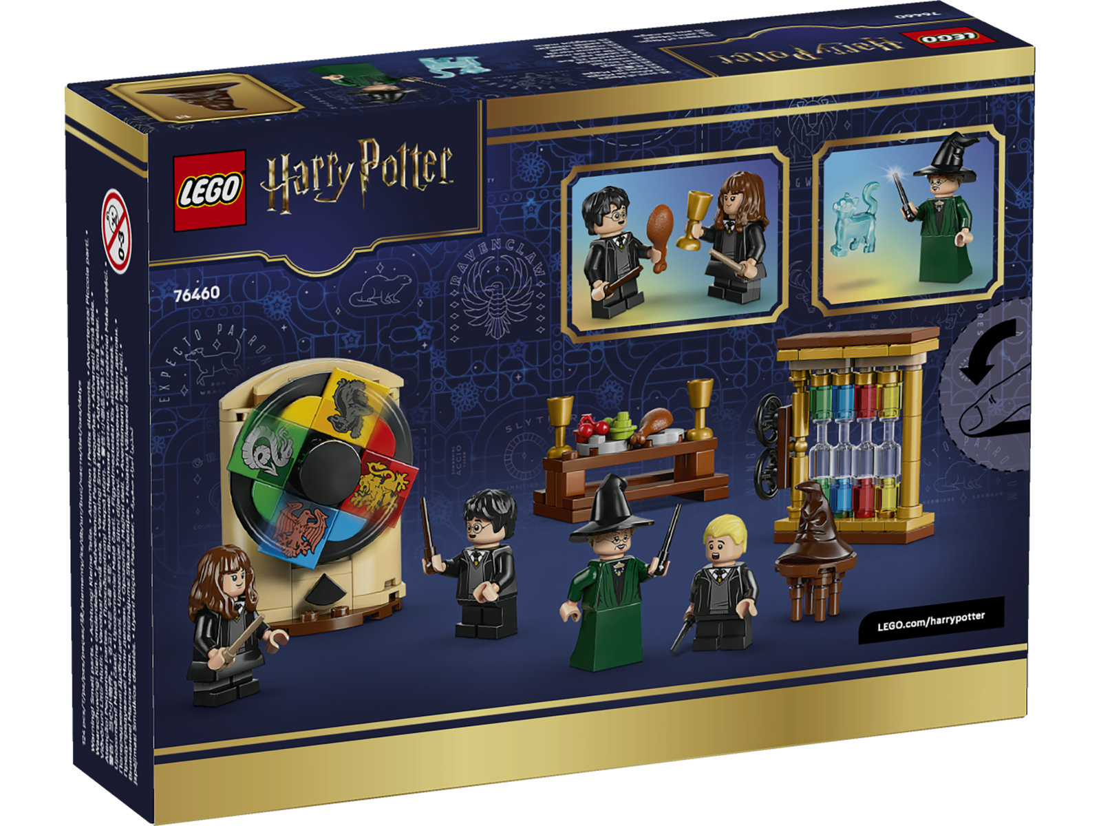 Das LEGO® Harry Potter™ Bauset (76460) lässt Kinder die Zeremonie mit dem Sprechenden Hut auf Schloss Hogwarts™ nachspielen – genau wie in Harry Potter und der Stein der Weisen. Das Harry Potter Geschenk für Jungen, Mädchen und alle Fans ab 7 Jahren beinhaltet 4 LEGO Harry Potter Minifiguren: Professor McGonagall™, Harry Potter, Hermine Granger™ und Draco Malfoy™. Setz jedem Schüler den Sprechenden Hut auf und dreh das „Zuordnungsrad“, um zu erfahren, welchem Haus auf Schloss Hogwarts™ die Kinder zugewiesen werden. Ein Esstisch und ein Hauspunkte-Zählwerk bieten weitere Spielmöglichkeiten. Dieses Abenteuerset für Kinder ist eine Hommage an das allererste LEGO Harry Potter Set (4701) aus dem Jahr 2001. Es beinhaltet auch einen Sammel-Patronus zum 25-jährigen Jubiläum: Professor McGonagalls Katzen-Patronus. Das Set passt in Schloss Hogwarts: Die Große Halle (76435). Dieses Set gehört zu einer ganzen Sammlung von modularen (separat erhältlichen) Bauspielzeugen, die zusammen das bisher detailreichste Schloss Hogwarts aus LEGO Steinen bilden. Das Set besteht aus 124 Teilen.