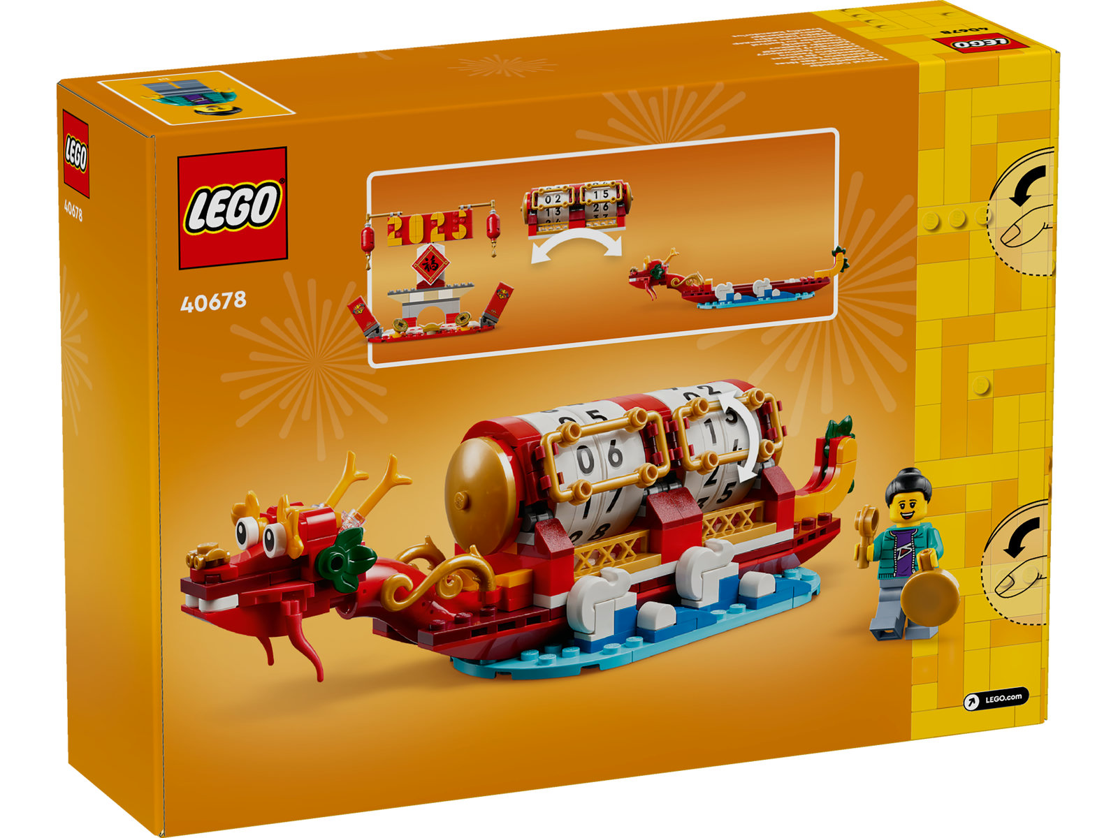 Dieser fantastische LEGO® Feiertagskalender (40678) lässt Kinder kreativ werden und 2 Feiertage darstellen. Das Set ist ein tolles Geschenk für Jungen und Mädchen ab 10 Jahren. Der LEGO Kalender aus diesem Bauset bietet 2 faszinierende Bauoptionen, um Kinder kreativ werden zu lassen und 2 wichtige chinesische Feiertage darstellen zu können – das Mondneujahrsfest und das Drachenbootfest. Die Version zur Feier des Mondneujahrsfests beinhaltet 2 Minifiguren und Laternen. Das Modell zur Feier des Drachenbootfests besteht aus einem wunderschönen Drachenboot mit Kopf und Schwanz und einigen Wasserelementen. Feuerwerkskörper und rote Umschläge sind weitere symbolträchtige Details. Darüber hinaus lässt sich der Kalender auch drehen, damit Kinder das richtige Datum anzeigen können. Das fertige Modell ist eine spektakuläre LEGO Deko, die in jedem Zimmer ausgestellt werden kann. Das Bauset ist nicht nur eine tolle Aufmerksamkeit für Kinder, Jugendliche und Erwachsene und ein fantastisches Geschenk zum Mondneujahrsfest oder zum Drachenbootfest, sondern auch ein cooles Projekt für alle, die mehr über diese Feiertage erfahren möchten.
