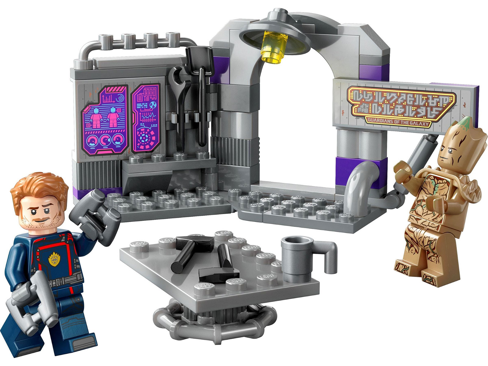 - Vertraute Helden: Das Set beinhaltet die beiden legendären Minifiguren Groot und Star-Lord sowie eine baubare Basis mit Werkzeug, Geräten und einem Tisch