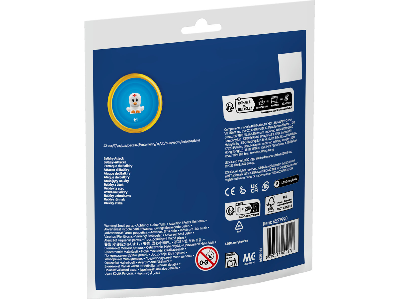 Kinder erwarten jede Menge Action und Abenteuer, wenn sie versuchen, Clucky vor dem Badnik Balkiry zu retten. Das Set beinhaltet die Minifigur Clucky und die Baufigur Balkiry.