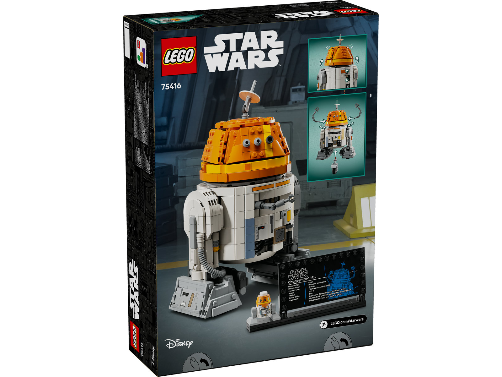 - Set zum Bauen und Ausstellen: Die baubare Hauptfigur steht auf einem Ständer mit Infotafel. Dort ist auch Platz für den ebenfalls enthaltenen LEGO® Droiden Chopper (C1-10P) in Normalgröße