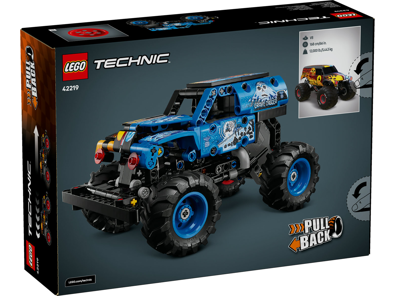 - MONSTER JAM™ GRAVE DIGGER™ BAUSPIELZEUG: Der LEGO® Technic Monster Jam Grave Digger Feuer und Eis (42219) ist ein Monstertruck mit Rückziehmotor für Jungen und Mädchen ab 7 Jahren