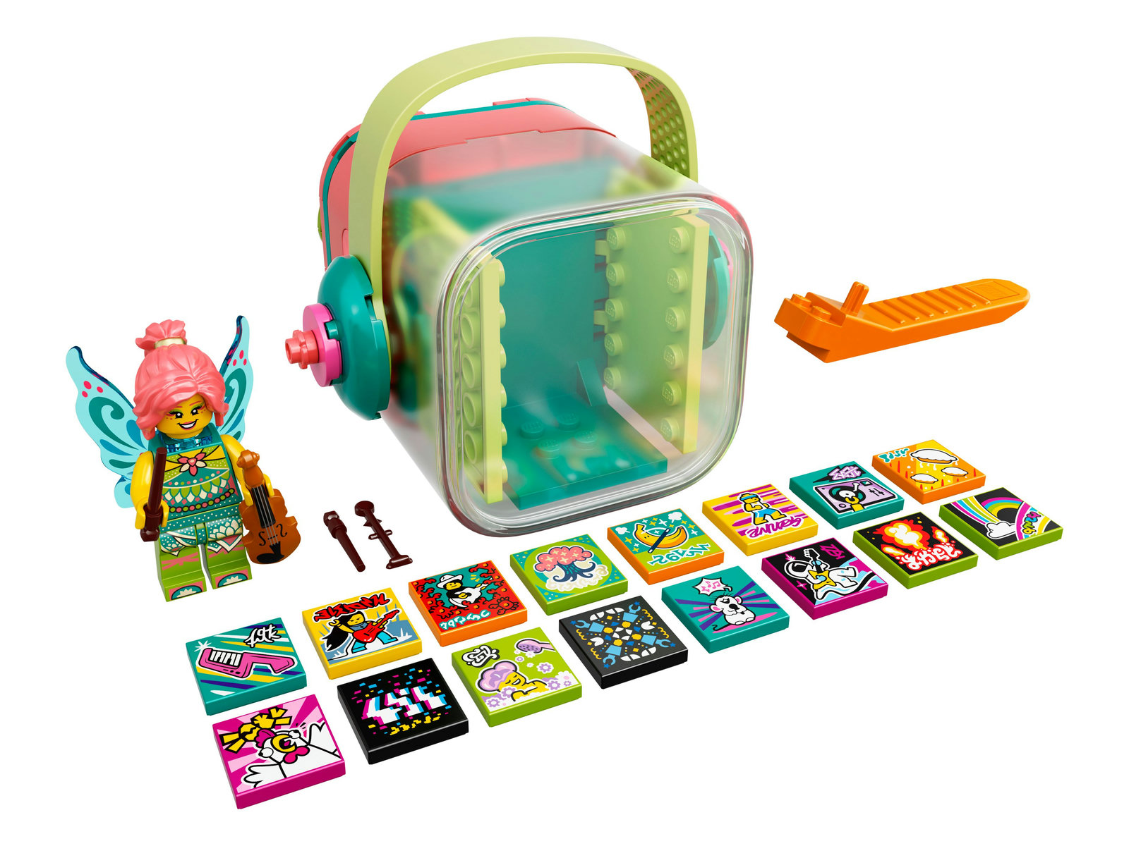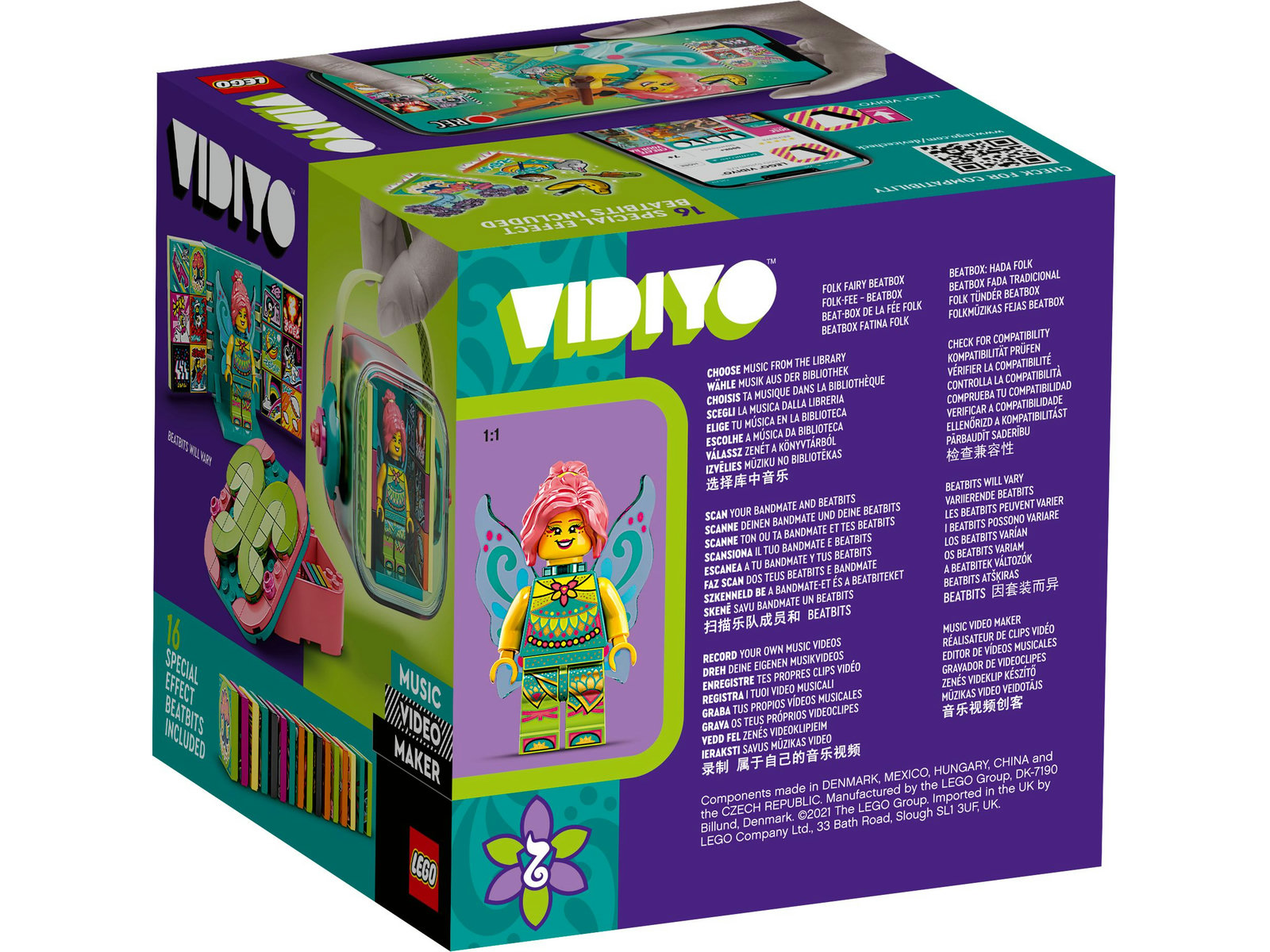 - Mit der LEGO® VIDIYO™ Folk Fairy BeatBox (43110), sowie der dazugehörigen App können Kinder ihre eigenen Musikvideos drehen und auf der sozialen Plattform der App mit anderen Kindern teilen. Das Set beinhaltet eine Fee-Minifigur, 14 zufällige BeatBits und 2 spezielle BeatBits.