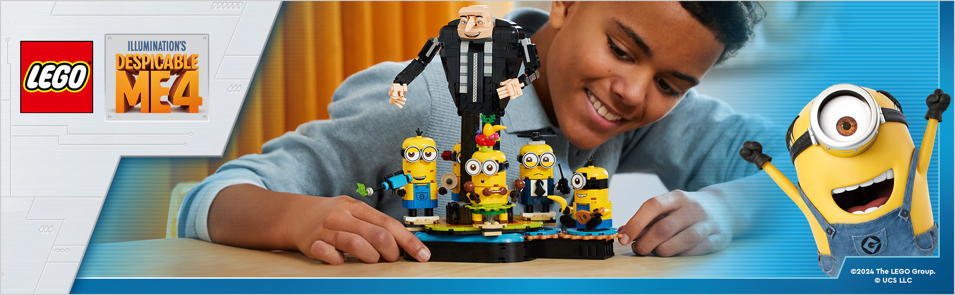 LEGO® Ich – Einfach unverbesserlich 4 Gru und die Minions aus LEGO® Steinen (75582) ist genau das richtige Set für Kinder, die Minions-Spielzeug lieben. Dieses kreative Bauspielzeug für Kinder ab 9 Jahren beinhaltet die Baufigur Gru, die von Minions umtanzt wird. Deshalb ist dieses Set zum Spielen und Ausstellen das perfekte Geschenk für Kinder und Fans der Filmreihe Ich – Einfach unverbesserlich. Die große Baufigur Gru hat Gelenke in den Armen, Beinen und Fingern, damit Kinder ihn in coole Posen bringen können. 5 baubare Minions sind ebenfalls enthalten: Jerry mit Maracas und Obsthut, Geheimagent Dave mit Funkgerät und Propeller auf dem Kopf, Beedoo Minion mit Megafon, Mel mit Ukulele und Kevin mit seiner Furzkanone. Die Minions stehen auf einer rotierenden Plattform. Wenn Kinder den sitzenden Minion drehen, umtanzen die anderen Minions ihren Boss! Alle Minions können ihre Hände bewegen und Zubehör halten. Auch die Köpfe sind beweglich, und man kann die Augen austauschen, um den Figuren unterschiedliche Gesichtsausdrücke zu verpassen. Man kann die 4 Minions von der kreisenden Plattform nehmen, um Kindern zusätzliche Spielmöglichkeiten zu bieten. Die Minions umtanzen Gru: LEGO® Ich – Einfach unverbesserlich 4 Gru und die Minions aus LEGO® Steinen ist ein tolles Set zum Bauen, Spielen und Ausstellen für Jungen und Mädchen ab 9 Jahren, die Fans der Filme mit den Minions sind Spielset mit Filmfiguren: Kinder können die Figur Gru mit Gelenken in Armen, Händen und Fingern sowie 5 weitere Minions mit markantem Zubehör, beweglichen Köpfen und austauschbaren Augen bauen Bewegliche Minions zum Spielen und Ausstellen: Kinder können Gru in coole Posen bringen und den sitzenden Mel drehen, damit die anderen Minions ihren Boss umtanzen Minion-Spielzeug für Kinder: Das filmgetreue Zubehör umfasst Maracas, einen Obsthut, einen Propeller für den Kopf, ein Funkgerät, ein Megafon, eine Ukulele und eine Furzkanone Minions-Geschenk: Dieses coole Set für Kinder ist ein kreatives Bauspielzeug und ein tolles Geburtstagsgeschenk für Fans der Minions und der Filmreihe Ich – Einfach unverbesserlich von Illumination 3D-Bauanleitung: Für ein fesselndes Bauerlebnis können sich Kinder die LEGO® Builder App herunterladen. Mit den digitalen Funktionen kann man 3D-Modellansichten drehen und vergrößern, Sets speichern und den Baufortschritt verfolgen Noch mehr Kinderspielzeug mit den Minions: Weitere LEGO® Ich – Einfach unverbesserlich 4 Spielsets sind separat erhältlich, um Kindern noch mehr Spaß mit den Minions zu bieten und sie die Sets sammeln, kombinieren und vielseitig umgestalten zu lassen Riesiger Bauspaß: Das 839-teilige Modell zum Spielen und Ausstellen ist 28 cm hoch, 23 cm breit und 16 cm tief